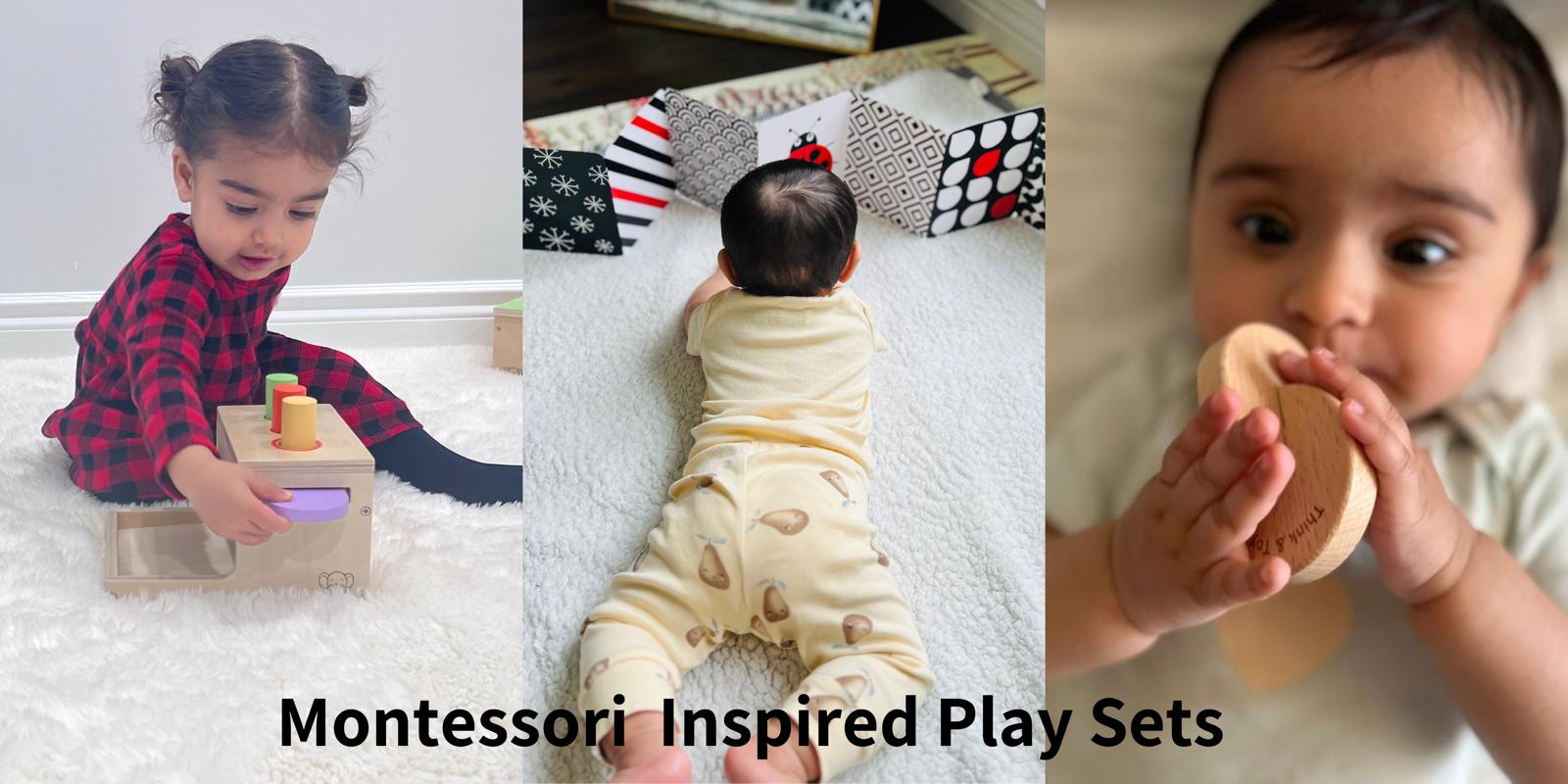The two Play sets include all the must have Montessori toys for baby's first year, eliminating the need for every other month subscription.